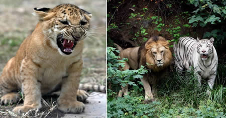 獅虎獸是由公獅和母虎雜交產(chǎn)下的,由母獅和公虎雜交產(chǎn)下的類似后代叫虎獅獸。該獅虎獸酷似帶有零碎條紋的巨獅,不過(guò)它們的習(xí)性像虎不像獅,喜歡游泳。它們是世界上最大的貓科動(dòng)物。