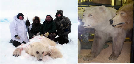 這只灰白熊經(jīng)DNA檢測(cè)是雄性灰熊和雌性北極熊雜交的后代。盡管兩種熊在基因上近似,但它們?cè)谝巴馔ǔ?huì)彼此避開。2006年4月16日,一名美國(guó)獵人在加拿大北極獵殺到了此只灰白熊,這是人們第一次在野外環(huán)境發(fā)現(xiàn)雜交動(dòng)物,之前的雜交熊只能在動(dòng)物園才見得到。