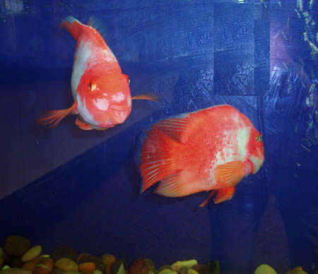 9、血鸚嘴魚:由麗魚和紅色魔鬼魚雜交產(chǎn)下