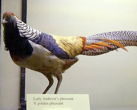 這只混血錦雞由白腹錦雞與紅腹錦雞雜交所得。它具有兩種錦雞與眾不同的色彩。