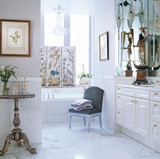 溫和的藍(lán)調(diào)臥室奢華氣質(zhì)十足,秘密在于鍍金材質(zhì)的運(yùn)用,顯現(xiàn)出鼎盛時(shí)期的美國(guó)好萊塢風(fēng)格。剪裁考究的軟裝布藝和華麗的裝飾元素相結(jié)合,打造出這間考究而豪華的臥室。同時(shí),各種極具收藏價(jià)值的藝術(shù)品也在臥室中散發(fā)著奇異的光芒。