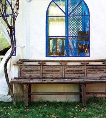 花園的一角放一把舊長椅,對比強烈,讓人懷舊。