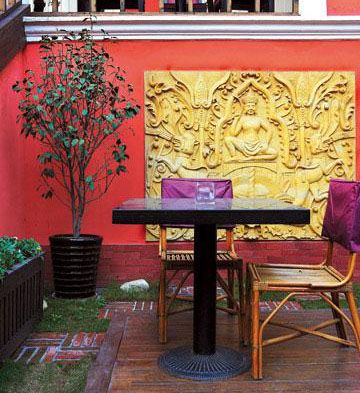 手法:充分運用當?shù)夭牧?,植物、桌椅、石材等都取材當?shù)?,強調簡樸、舒適的度假風情。清涼的藤椅、泰絲抱枕、精致的木雕、造型逼真的佛手、嫵媚的紗幔等。營造東南亞重要手法就是要讓人無負擔地隨性坐臥,舒緩緊張情緒,拋開紛擾的俗世,遺忘身邊的繁雜。泰式三角靠墊,放置在低矮的藤椅中,不經意地讓人放下身段,隨性坐臥。