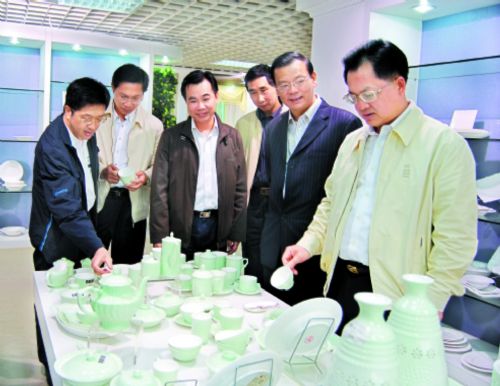 在廣東四通集團(tuán)公司調(diào)研時(shí),駱文智一邊認(rèn)真參觀公司的新產(chǎn)品,一邊與企業(yè)負(fù)責(zé)人進(jìn)行交談,了解企業(yè)發(fā)展有關(guān)情況 ."今年來銷售情況怎么樣?""廣交會(huì)準(zhǔn)備得怎么樣?""最近有什么新產(chǎn)品?"面對駱文智的詢問,四通集團(tuán)董事長蔡鎮(zhèn)城一一作了回答。據(jù)他介紹,受國際金融危機(jī)影響,今年來該公司陶瓷出口總量有所下降,就連原來比較穩(wěn)定的日用瓷最近銷量也有所下降,"這主要是因?yàn)閲饩频陿I(yè)目前已進(jìn)入低潮期,對日用陶瓷的需求減少所致,恐怕下半年這種情況還會(huì)更加嚴(yán)重。"