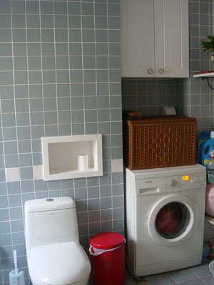 在只有四五平方米左右的小衛(wèi)浴間中,淋浴器、馬桶、洗臉臺(tái)已經(jīng)占據(jù)了不少面積,所以要做到干濕分離并不容易,消費(fèi)者要根據(jù)實(shí)際情況來選擇浴室柜??蛇x吊掛在墻角的或是離地面較高的浴柜,這樣往上層空間發(fā)展,也可以有效地利用起小空間。