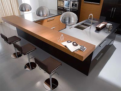 廚房不僅僅是干活的地方,同時(shí)也是享受的地方,餐臺(tái)的設(shè)計(jì)即可以吃飯。聚會(huì)聊天,也可以休閑地作為酒吧間。