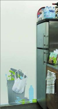 功能轉(zhuǎn)換:在特定環(huán)境的墻上配上相應(yīng)的圖案,如電冰箱旁的垃圾桶,垃圾桶是圖案,配上垃圾袋,儼然一個(gè)“保潔區(qū)”。
