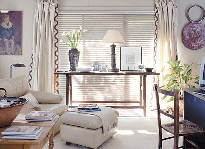 今年的春天似乎來得特別早,日歷還停留在二月份,陽光卻已大肆張揚了起來。隨著氣溫越來越高,木制和藤制的家具將倍受青睞。在大落地窗前擺上一張具有復(fù)古韻味的木制條桌,不僅彰顯了品位,還非常實用,除了可以在桌面擺放許多家品,桌底的儲物空間也非??捎^。