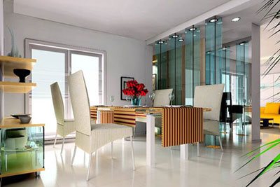 借鑒:由于客廳的用途較多,占用面積也較大,餐廳往往只占其中一隅,設計上必須注意分隔技巧,可從地板著手,將地板的形狀、色彩、圖案、質料分成兩個不同部分,餐廳與客廳以此劃分形成兩個格調迥異的區(qū)域,也可通過色彩和燈光來劃分,在視覺上輕而易舉地造成兩個不同區(qū)域。