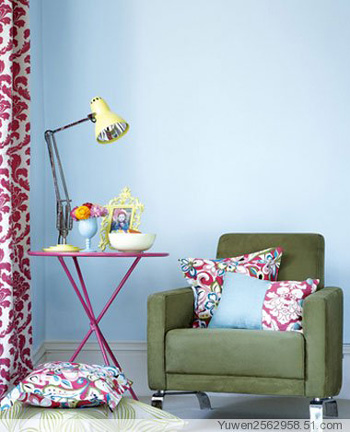 素色的回歸最能代表居家情緒的溫度,那是返璞歸真的淡定和從容。淡藍(lán)灰色墻面搭配大幅淺紅色窗簾,然后用覆盆子紅、柔和粉紅色調(diào)的布藝及配飾營造出一種別樣的溫馨與雅致。
