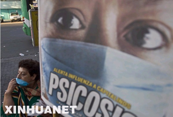 4月25日,墨西哥首都墨西哥城貼出宣傳海報,提醒人們預防豬流感。新華社發(fā)(戴維攝)
