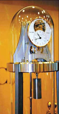 號(hào)稱'鐘表世界的勞斯萊斯'的頂級(jí)時(shí)鐘'時(shí)間紀(jì)念者'。這款售價(jià)為80萬元的天價(jià)時(shí)鐘ColumnaTemporis室內(nèi)落地鐘,中文譯名為'時(shí)間紀(jì)念者',它是由世界排名第一的德國百年老店ErwinSattler(昂文德帝)制鐘公司推出的杰作,被人們喻為是鐘表業(yè)內(nèi)的'勞斯萊斯',其生產(chǎn)的鐘200年質(zhì)量不變,Sattler精密擺鐘每個(gè)月只有1秒的偏差。'時(shí)間紀(jì)念者'高1.6米,重達(dá)100公斤,它最引人注目的特征是通體透明,各個(gè)昂貴的部件被安置在一個(gè)人工吹制而成的礦物玻璃罩中。人們欣賞的目光可以毫無阻礙地透過它,落在用手工精制而成的鐘表機(jī)芯上。藍(lán)色的指針、鋼制的鐘擺、精雕細(xì)刻的鍍銀表盤、內(nèi)部精美的制動(dòng)裝置更從細(xì)節(jié)設(shè)計(jì)中,將'時(shí)間紀(jì)念者'的典雅與高貴體現(xiàn)得淋漓盡致。據(jù)了解,'時(shí)間紀(jì)念者'每年僅生產(chǎn)10只,純手工制作。