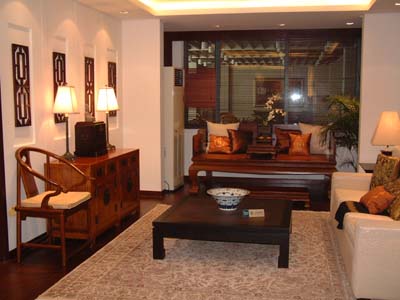 中國(guó)傳統(tǒng)的室內(nèi)設(shè)計(jì)融合了莊重與優(yōu)雅雙重氣質(zhì)?,F(xiàn)在的中式風(fēng)格更多地利用了后現(xiàn)代手法,把傳統(tǒng)的結(jié)構(gòu)形式通過(guò)重新設(shè)計(jì)組合以另一種民族特色的標(biāo)志符號(hào)出現(xiàn)。例如,廳里擺一套明清式的紅木家具,墻上掛一幅中國(guó)山水畫等,傳統(tǒng)的書(shū)房里自然少不了書(shū)柜、書(shū)案以及文房四寶。 中式風(fēng)格的客廳具有內(nèi)蘊(yùn)的風(fēng)格,為了舒服,中式的環(huán)境中也常常用到沙發(fā),但顏色仍然體現(xiàn)著中式的古樸,中式風(fēng)格這種表現(xiàn)使整個(gè)空間,傳統(tǒng)中透著現(xiàn)代,現(xiàn)代中揉著古典。這樣就以一種東方人的“留白”美學(xué)觀念控制的節(jié)奏,顯出大家風(fēng)范,其墻壁上的字畫無(wú)論數(shù)量還是內(nèi)容都不在多,而在于它所營(yíng)造的意境。可以說(shuō)無(wú)論現(xiàn)在的西風(fēng)如何勁吹,舒緩的意境始終是東方人特有的情懷,因此書(shū)法常常是成就這種詩(shī)意的最好手段。這樣躺在舒服的沙發(fā)上,任千年的故事順指間流淌。