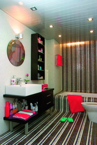 一般來(lái)說(shuō),面積較小的浴室,安裝一盞頂燈(圖1)作為普通照明就可以了,而面積較大的浴室,可以采用頂燈加壁燈的組合照明方式(圖2)。在衛(wèi)生間的燈光設(shè)計(jì)上,輔助照明是非常重要的,要格外注意。比如在墻上安裝壁燈時(shí),要將燈安裝在與窗垂直的墻面上,以免在窗上反映出陰影;在安裝頂燈時(shí)要注意避免將它安裝在浴缸的上面,浴室的洗臉玻璃鏡上方可以裝鏡前燈,鏡前燈最好選用可調(diào)投光角度并且發(fā)射光線柔和的款式,避免由于光照不當(dāng)造成的陰影或者帶來(lái)強(qiáng)烈的眩光?;蛟S只是一個(gè)燈光的改變,就能讓人忽視了冬日的寒冷,專心享受放松和愉悅的感覺(jué)。