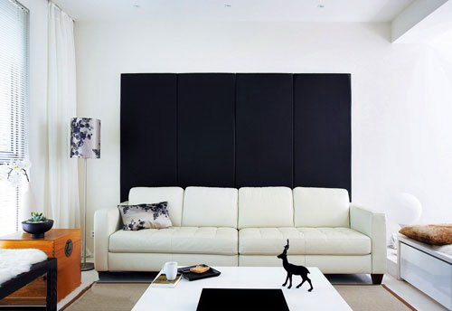 一條簡(jiǎn)單的黑色長(zhǎng)條色塊增加了角落的深 度,本來(lái)容易被忽視的角落反而成為了居室里的亮點(diǎn)。其它配飾的選擇除了顏色非黑即白之外,最 好選擇不同的材質(zhì)和質(zhì)地,這樣就會(huì)有既豐富又單純的效果。