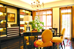 該臥室的燈飾設(shè)計(jì)迎合了一些商務(wù)人士的愛好,有點(diǎn)酒店風(fēng)格,另外加上屋子內(nèi)設(shè)了一個(gè)小會(huì)客空間,非常適合接待比較私密的朋友。(如上圖)