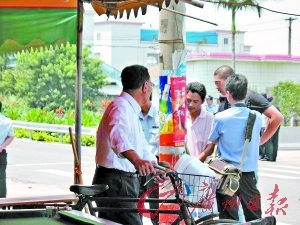 昨天,8輛警車開到立滔制衣廠門口,杏龍路前往龍?zhí)洞宓牡缆匪闹苡擅窬咽睾?,?shù)十名刑警、民警押下4個疑犯,直接走到游名勝當晚打牌被殺的士多。民警們押著一身穿粉紅色短袖上衣的男子,正站立在士多的一根電線桿旁指認,這里距離游名勝打牌時的麻將桌不到半米。幾分鐘后,刑警把右手搭在該男子的肩上,一起走上警車。不久,4疑犯被4輛警車分別帶走。在指認現(xiàn)場,警方并未接受采訪。
