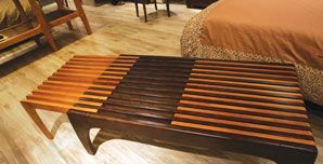 有些家具仿佛被施了乾坤挪移大法,招招出奇制勝。就像這款電視柜,造型非常簡潔,由直條型的木框組合而成。據(jù)店員介紹,它既可當成電視柜,也可以當作茶幾,還可以當作腳凳使用。一柜多用不說,它還將變形玩具的變形魅力引用過來,拉動它的兩邊,就可以伸展出它的“臂膀”,像變形金剛突然“長”出胳膊一樣。將它的雙臂全面展開,原本不足一米的小身材頓時變成長達一米八的大個子,非常威猛,或許這就是它之所以可以變化成茶幾,或者腳凳的來源吧。