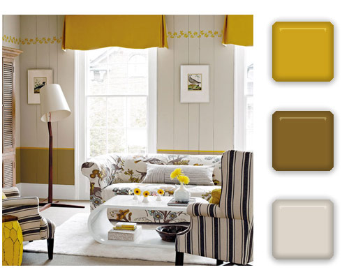 白色是傳統的習慣色彩,以白色為主調的房間,其裝飾物也比較容易搭配。淡黃色或淡粉色等溫暖、寧靜的色彩較為亮麗,會使客廳顯得寬敞明亮,給人以輕松、舒服感。金色、銀色可以與任何顏色相配襯,但金色不包括黃色,銀色不包括灰白色。家用配色在沒有設計師知道的情況下,最佳配色度為:墻淺、地中、家具深。營造明快、現代的家居品味,不要選用印有大花小花的東西,盡量使用素色的設計。