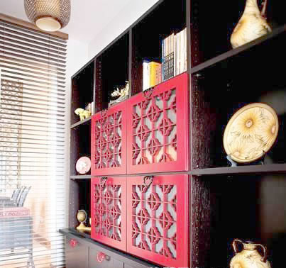 如將以前用來(lái)做藥柜的大型櫥柜現(xiàn)在當(dāng)做書(shū)架和電視柜。