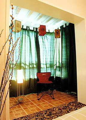 在陽臺外側(cè)裝一鐵架,錯落有致地置上各種盆栽花木;在陽臺內(nèi)側(cè)和扶欄上擺放一些山水盆景;陽臺兩側(cè)可搭架種植幾株牽牛花、長春滕、葡萄等攀滕植物;或在陽臺上鋪黑白的鵝卵石,種上中國蘇州園林中最常見的荷花、翠竹,一個理想中的世外桃源就這樣生成了。或請設(shè)計師在陽臺上創(chuàng)造了一個“微縮景觀”,并與客廳墻上的中國古典仕女畫相之呼應(yīng)。濃濃的中國情節(jié)籠罩著整個居室,讓每一位來此的人們都感受到自然的生機和活力。令人不出家門就可盡情地享受到大自然的樂趣。