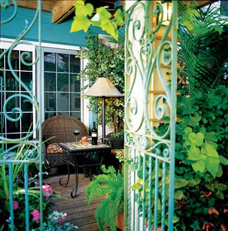 即使在沉悶的天氣里,下沉花園上方懸臂上的吊扇,也會給在花園里乘涼的人帶來習習清風。到了寒冷的季節(jié),就是漂亮壁爐發(fā)揮作用的時候了,暖暖的火光能驅(qū)走寒冷,增加戶外空間的使用時間?;▓@中種滿熱帶氣息的植物,如棕櫚樹、芙蓉花、黑葉芋與一年生植物、蔓生植物填滿了花箱和花盆,給小庭院帶來生機勃勃的感覺,也達到了阻隔外界視線、保護隱私的作用。而小噴泉潺潺的流水聲則把街道的喧囂淹沒在外。