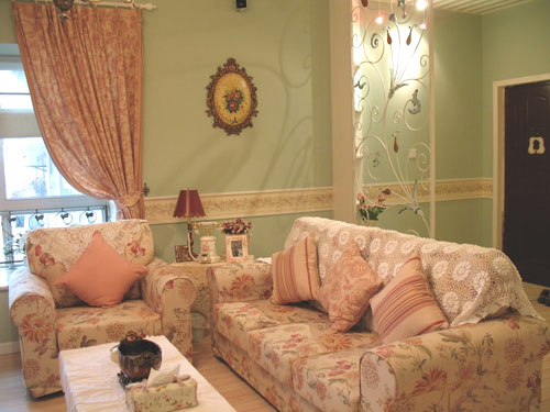 沙發(fā):沙發(fā)的顏色一般選擇暖色調(diào)的,像淺淺的橙色、粉色、草綠色都可以顯出田園派的寧靜和清新。沙發(fā)可以和窗簾選擇同一種顏色和圖案的布藝產(chǎn)品,也可以將不同的顏色和圖案進(jìn)行混搭,使客廳的布置在視覺上更加的豐富和飽滿。