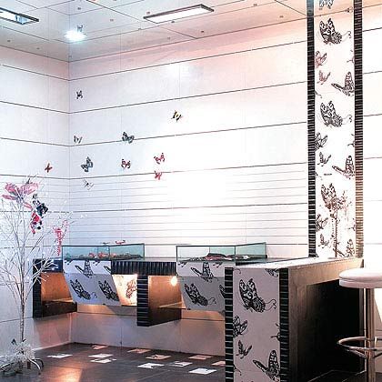 瓷磚表面像成匹的絲綢一般,深淺交映的光澤,有的還將各種賦有代表性的圖案與色彩巧妙融入其中,可以充當(dāng)有藝術(shù)品位的主題墻。