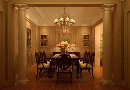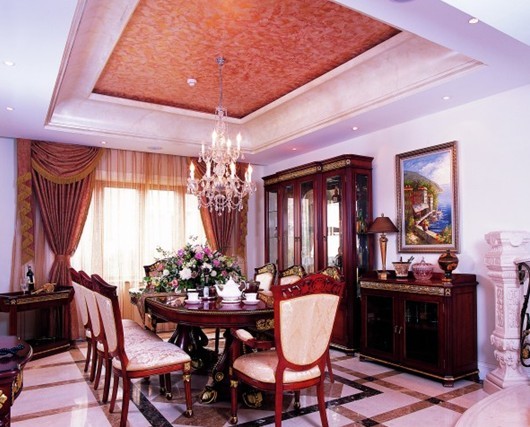 雕花的餐椅,用陶瓷裝飾的展示柜,處處體現(xiàn)新古典風(fēng)格