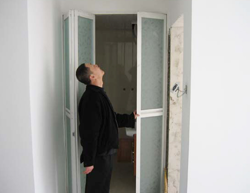 監(jiān)理正在對門的安裝進(jìn)行檢測