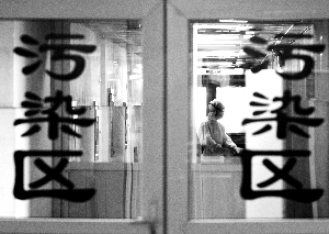 醫(yī)務(wù)人員在污染區(qū)內(nèi)工作。昨日,成都對媒體開放收治內(nèi)地首例甲型H1N1流感患者的隔離樓。本報(bào)特派記者 禇朝新 攝