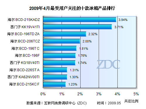 (圖)2009年4月最受用戶關(guān)注的十款冰箱產(chǎn)品排行