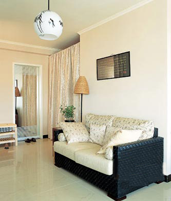 一個(gè)人住很少自己在家做飯,盡管姜愫有著一手的好廚藝,但看來(lái)是一般朋友所享受不到的。因而她將原來(lái)的封閉式廚房改成了開(kāi)放式,使得客廳的空間得到了擴(kuò)展。其實(shí)對(duì)于一個(gè)人來(lái)說(shuō),客廳的利用率要遠(yuǎn)遠(yuǎn)超過(guò)對(duì)廚房、衛(wèi)生間、臥室的使用,獨(dú)處時(shí)或和朋友相聚,這里總是首選。除此之外,姜愫還把客廳做了很好的劃分,一個(gè)是視聽(tīng)區(qū)域,一個(gè)則是會(huì)客區(qū)域。會(huì)客區(qū)是和廚房緊密相連,這樣拿取飲料或者想隨便做點(diǎn)什么,朋友和自己都會(huì)很隨意,為了讓空間顯得盡可能的寬敞些,而不至于讓朋友們覺(jué)得擁擠,姜愫沒(méi)有選擇常規(guī)的桌椅沙發(fā),而是采取了日式的風(fēng)格,一塊地毯劃分了這塊區(qū)域,上面是矮矮的蒲團(tuán)和矮矮的桌子,親密的朋友團(tuán)坐在上面很愜意,緊靠著的飄窗也讓這里的視野很開(kāi)闊。而視聽(tīng)區(qū)域通常是自己獨(dú)自享受的,平時(shí)想一個(gè)人的時(shí)候,靜靜地背靠在心儀的沙發(fā)上,看張碟片或者聽(tīng)聽(tīng)音樂(lè),都是美妙至極的。