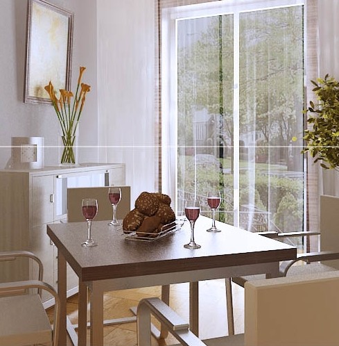 一般除餐桌、餐椅和燈具外,可以根據(jù)主人的愛好和空間大小搭配酒柜、展示柜、酒車等,再配以適當?shù)木G色植物和裝飾畫,墻面的色調(diào)盡量用淡暖色,以增進食欲。燈具選擇可以不受空間高低的限制,選擇主人喜歡的吊燈。