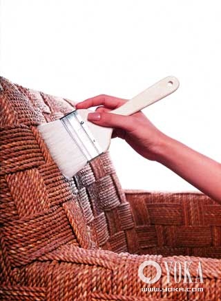 小型的手動(dòng)吸塵器(吸塵刷)不僅可以拂去所掛外套上的浮灰,清潔布藝沙發(fā),清潔起藤制家具網(wǎng)面中的積塵也是一流。另外你也可以用廢棄的毛筆來做一次徹底的除塵,由內(nèi)向外拂去網(wǎng)眼中的灰塵。注意不同的藤料、不同規(guī)格的網(wǎng)眼最好用不同質(zhì)地、型號(hào)的毛筆。比如白藤質(zhì)軟,用羊毫筆當(dāng)刷子最佳,而赤藤和竹藤較硬朗,建議使用狼毫筆。