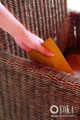 待灰塵除去后再用微濕(三分濕)的抹布擦一遍,等其自然風(fēng)干后,用砂紙打磨藤制家具的外表面,搓去表面的污漬并恢復(fù)光滑,最后上一層光油,在陰涼處吹干,即可煥然一新。