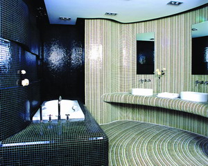 除了馬賽克的花色選擇和風(fēng)格拼貼以外,還不能忽視馬賽克與地面、衛(wèi)浴用品及飾品的和諧搭配。一般來說,深色馬賽克的浴室空間內(nèi)應(yīng)搭配輕松、明快顏色的衛(wèi)浴用品。比如可以搭配白色衛(wèi)浴產(chǎn)品,飾品的色彩可以相對(duì)跳躍一些,這樣能夠增加室內(nèi)活潑、靈動(dòng)的氣氛。