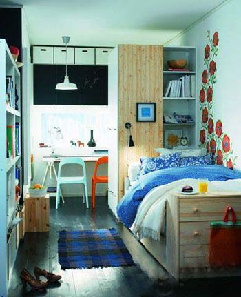 床邊的小桌子或小柜能方便你放置燈、書籍、水杯、鬧鐘、耳機等物品,如果小桌或小柜還配有擱板或抽屜,更有助于整齊存放物品,還可以將儲物箱和儲物筐放在床腳處用來存放備用毯子。