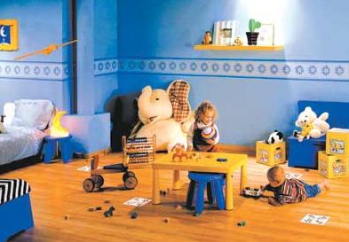 同時,兒童喜歡在地面玩耍,地板的選擇尤其顯得重要。兒童間最好選用易清潔的強(qiáng)化地板或免除跌打受傷的軟木地板,也可以選擇避免接觸污染的抗菌地板。兒童間的地毯要經(jīng)常清洗,以免造成螨蟲或者細(xì)菌污染。