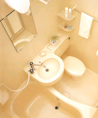 裝飾特點:在極為窄小的空間里,可以實現(xiàn)最多功能。如果衛(wèi)生間很小,一般擺放浴缸是不可能的,但整體預制型衛(wèi)浴利用鑄模的優(yōu)勢解決了這個問題,浴缸在長度的限制下盡量做寬,盥洗池和馬桶為一個整體,這樣,水箱的位置可以做一個放置物品的臺面。