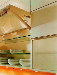 瞬間表現(xiàn):一頭撞到打開的吊柜門上,會覺得氣惱。傳統(tǒng)吊柜多采用平拉式,打開柜門時既占用空間,又影響正常的料理操作,而上掀式吊柜解決了這個問題,找尋吊柜里的東西也比以前方便多了。