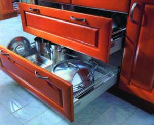 瞬間表現(xiàn):大容量的立柜由門式換成抽屜式以后,直接拉出的抽屜可以使放置其中的物品全部展現(xiàn)在視野之內(nèi),一目了然,不必像使用門式立柜那樣經(jīng)常要進(jìn)行下蹲運(yùn)動,從光線不足的大柜子里摸索尋找物品了。