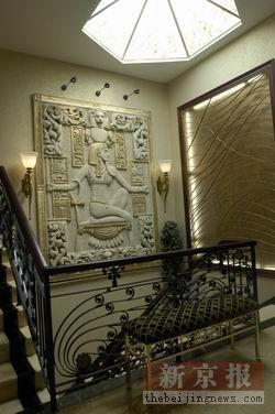 金色鑲嵌的埃及風格石雕在陽光的照耀下顯得異常神秘。