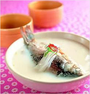 [做法]白鯽魚宰洗凈,慢火煎至微黃,濺入少許清水,鏟起;雞蛋煎為荷包蛋狀,鏟起;起油鑊爆香姜片,加入清水1250毫升(5碗量),武火滾沸,下白鯽魚滾片刻,下荷包蛋,滾沸后撒入適量食鹽、胡椒粉便可。