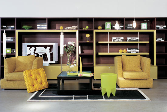 中宮宅(家宅坐東,大門向西)的客廳可自由設(shè)置,但須用黃色系列來統(tǒng)一全室