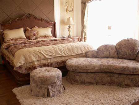 一般在臥室里走動的時間通常僅限于睡前或起床的那一小片刻,時間雖不長,但踩在冰冷的地板上,總是令人感覺不到溫暖,特別是在寒冷的冬季里。所以,在床邊或床尾放置一塊地毯,可以讓上床下床時的腳掌得到溫暖的呵護。兩張床要用兩張地毯,分別靠墻的單人床,運用長型的兩張小地毯就能創(chuàng)造溫馨感覺。