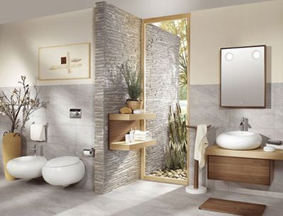 墻面的處理方式應(yīng)該是盡可能地富有想像力,要不就盡量求簡。在水泥墻上涂上一層油漆會使浴室增添暖度,而馬賽克玻璃磚,刻花磁磚,甚至板舌以及凹槽處理都能使墻壁的設(shè)計更為有趣。