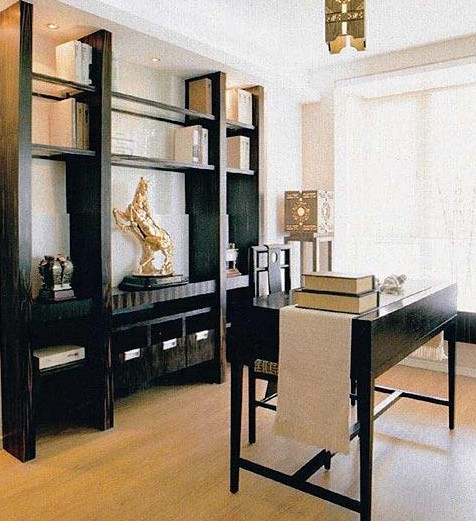 空間布局:書房的布局要盡可能地“雅”。在您的書房中,不要只是一組大書柜,加一張大寫字臺、一把椅子,您要把您的情趣充分融入您書房的裝飾中,一只藝術(shù)收藏品、幾幅您鐘愛的繪畫或照片、幾幅您親手寫就的墨寶,哪怕是幾個古樸簡單的工藝品,都可以為您書房增添幾分淡雅、幾分清新。