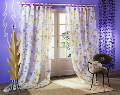 2、對于像窗簾、帷幔、壁掛等懸掛的布飾,其面積、色彩、圖案、款式等,要與居室的空間相匹配,在視覺上要有平衡感。如較大的窗戶,應以寬出窗洞、長度接近地面的窗簾來裝飾;小空間內(nèi),要配以圖案細小的布料,這樣才不會有失平衡。