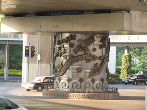 在上海出門似乎都要經(jīng)過高架路,車上高架路,總是會(huì)經(jīng)過上海高架路交流的中心──延安路、成都路。凡經(jīng)過此地的無一不被高架主柱上裝置的精美龍紋所吸引,瞬間必然會(huì)一個(gè)出現(xiàn)問題:延安路、成都路高架主柱上為什幺要獨(dú)“柱”一秀,圍上白鋼,紋上龍飾?無論你是坐私家車、公家車、還是出租車,開車的司機(jī)會(huì)主動(dòng)告訴你一個(gè)關(guān)于高架與龍的的故事,出于每個(gè)司機(jī)之口,版本不同,內(nèi)容大同小異,充滿著神秘和神奇。